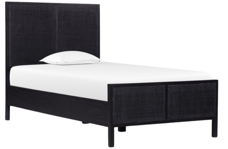 Black-washed mango frames an inset of black woven cane, for a textural, monochromatic look.