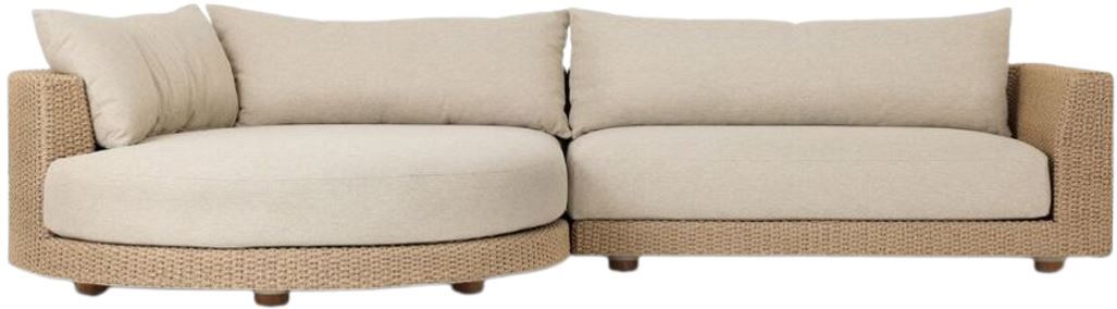 Streamlined comfort with an upscale modern look. This outdoor sectional has a woven frame that offers depth to a clean shape with a chaise. Monochromatic color pairing with knife edge back and box seat cushions adds to the simple silhouette and mixed material look.Read More