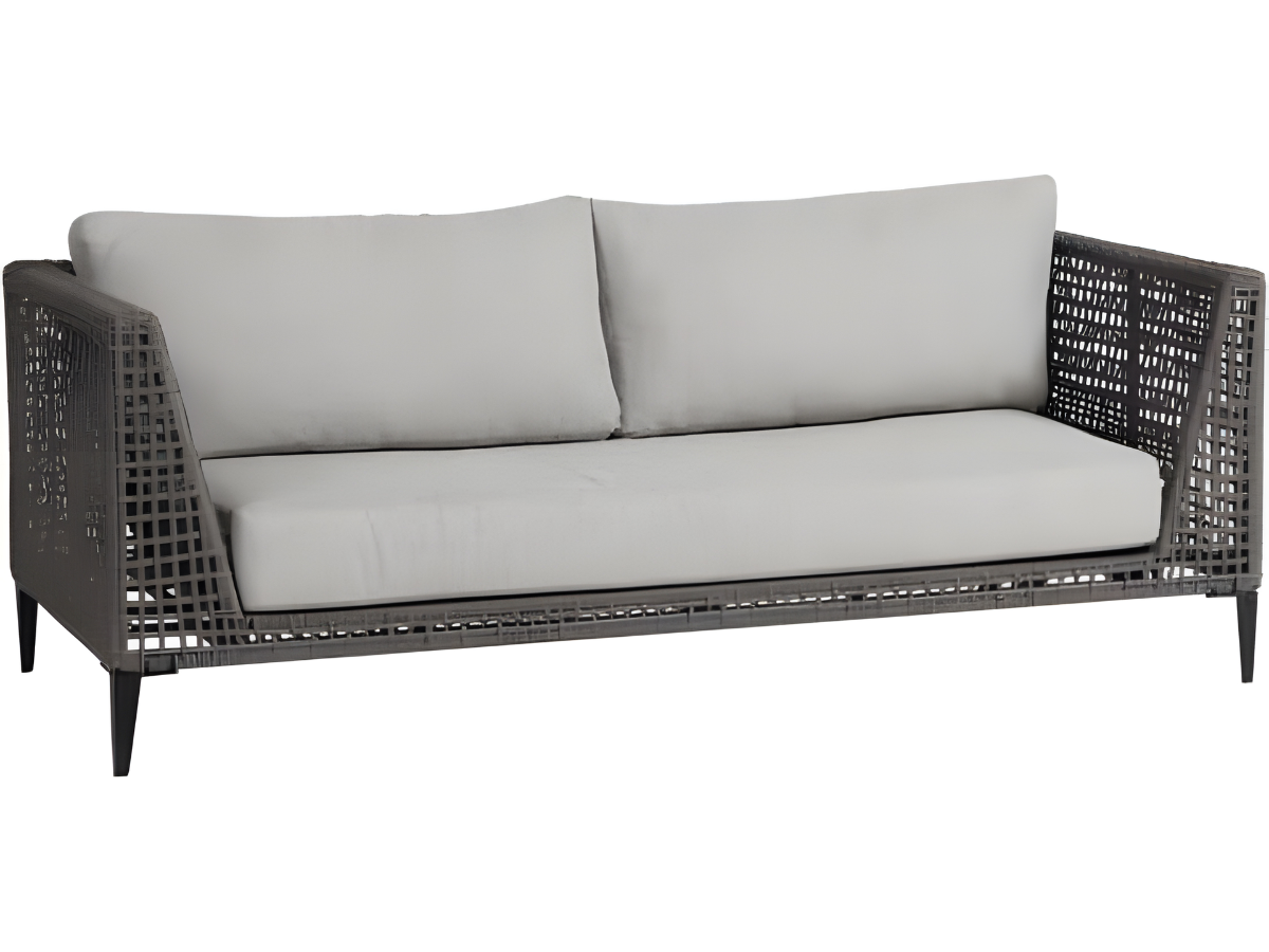The Genval sofa brings to mind the romantic lakeside with that picturesque natural Belgium small town feel, that makes you want to sit and indulge every breathtaking moment. Featured with our grey rope woven intertwined pattern design and accented with black powder coated aluminum frames, this by the lake inspired set is the perfect unit to create your own custom configuration. Made with durable polypropylene rope material that is weather-resistant, and durable faux concrete pattern aluminum tops for both coffee and end tables. Genval is ready to make you feel at one with nature by bringing you outdoors with this contemporary sectional furniture set only by Ratana.Read More