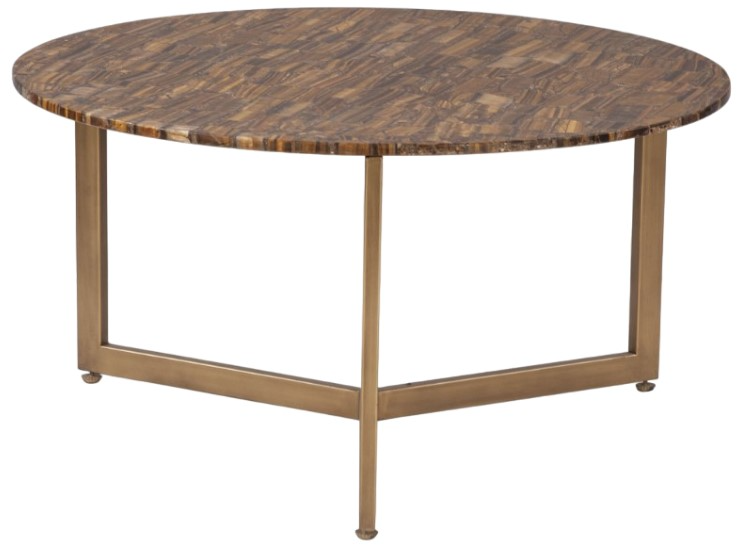 The Calico Coffee Table in Tiger Eye Stone features a striking tabletop with rich, warm hues and unique grain patterns, complemented by a sturdy iron base. This combination of materials ensures durability while adding a modern touch, making it a perfect centerpiece for living spaces.Read More