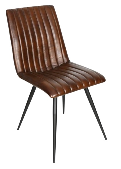 The Essex Chelsea dining chair features Hand Washed Chestnut channeled leather upholstery, paired with sleek black iron legs. This chair combines rustic charm with modern sophistication, making it a standout addition to any dining space.Read More