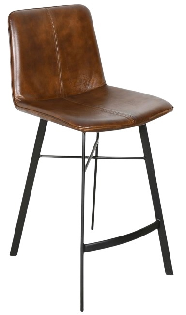 The Essex Murphy Counter Chair features chestnut leather upholstery and a sleek iron base with an X-cross design. Blending perfect style with refined elegance, this chair is a perfect addition to modern dining spaces.Read More