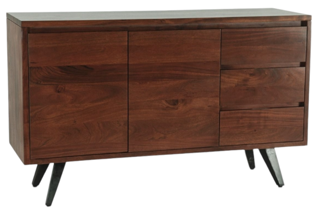 The Home Trends & Design Kennedy Walnut Sideboard showcases a rich walnut finish with clean lines and ample storage. Featuring cabinets and drawers, it’s perfect for organizing and elevating dining or living spaces.Read More