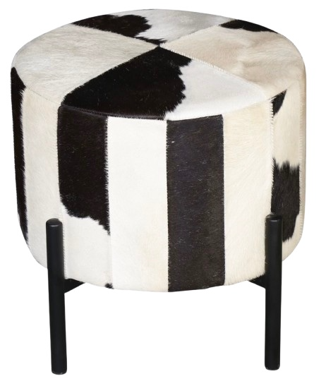The Home Trends & Design Nola Black Hair on Hide Ottoman combines charm with and elegance style. Featuring a unique hair-on-hide seat and sturdy frame, it adds texture and interest to any space. Perfect as extra seating or a stylish accent piece, this stool enhances your decor with a touch of elegance.Read More