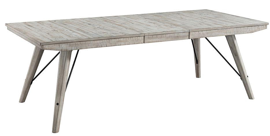 18" Self-storing leaf in rectangular table made with solid acacia construction. Tables include ultra glide metal table slides for easy open and close. Stylish metal detailing on table legsRead More