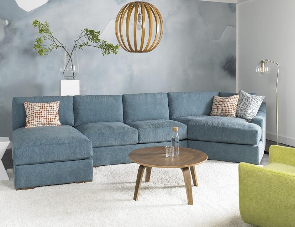 This Blake sectional features sloped track arms and sleek walnut block legs giving this ultra-cozy couch a clean, modern look that complements just about any décor.