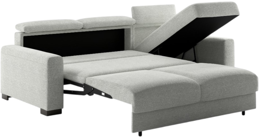 Transform your space with this sectional queen sleeper. This sophisticated design combines contemporary style with premium comfort, featuring innovative ratchet headrests and an advanced Hybrid Deluxe mechanism that seamlessly converts between a versatile reversible chaise bed and a comfortable queen-size sleeping surface.Read More