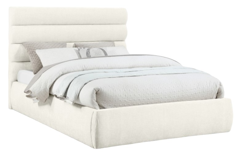 Revealing the silky, soft Adam cream chenille queen bed, showcasing deep channel tufting and a contemporary design to add a touch of modern elegance to your bedroom. Its fully slatted construction eliminates the need for a box spring, while the option to add additional panels allows you to customize the headboard height.Read More