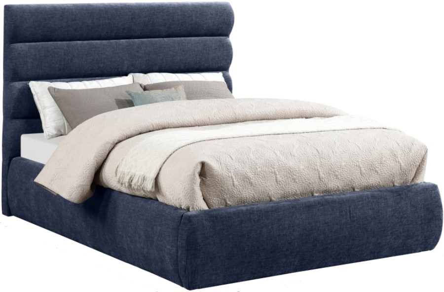 Revealing the silky, soft Adam navy chenille full bed, showcasing deep channel tufting and a contemporary design to add a touch of modern elegance to your bedroom. Its fully slatted construction eliminates the need for a box spring, while the option to add additional panels allows you to customize the headboard height.Read More