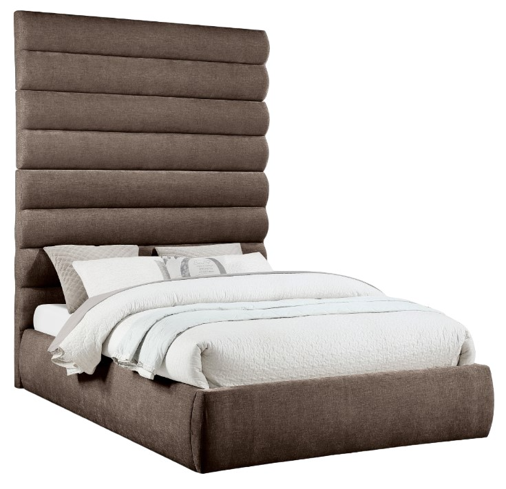 Revealing the silky, soft Adam brown chenille queen bed, showcasing deep channel tufting and a contemporary design to add a touch of modern elegance to your bedroom. Its fully slatted construction eliminates the need for a box spring, while the option to add additional panels allows you to customize the headboard height.Read More