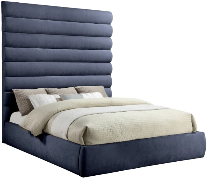 Revealing the silky, soft Adam navy chenille king bed, showcasing deep channel tufting and a contemporary design to add a touch of modern elegance to your bedroom. Its fully slatted construction eliminates the need for a box spring, while the option to add additional panels allows you to customize the headboard height.Read More
