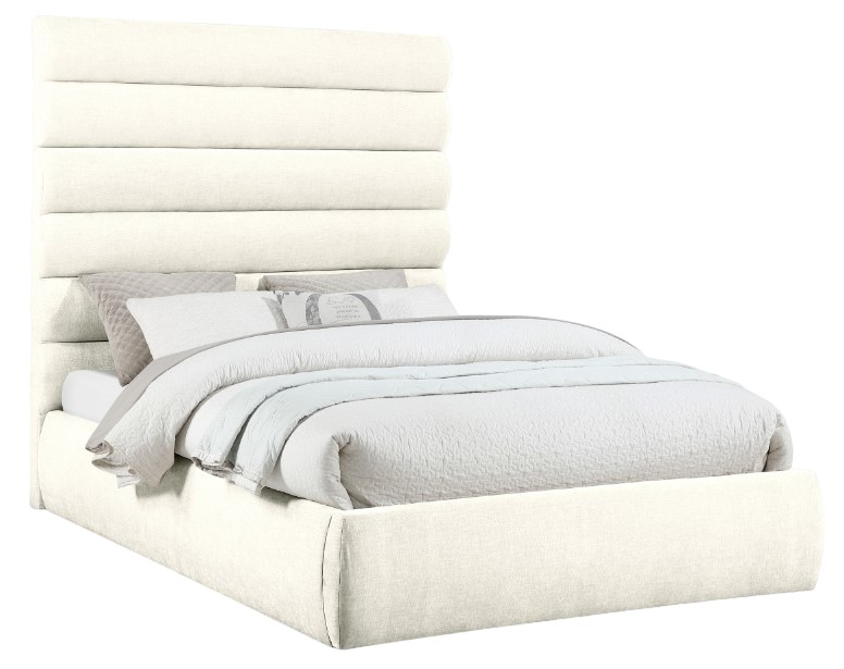 Revealing the silky, soft Adam cream chenille queen bed, showcasing deep channel tufting and a contemporary design to add a touch of modern elegance to your bedroom. Its fully slatted construction eliminates the need for a box spring, while the option to add additional panels allows you to customize the headboard height.Read More