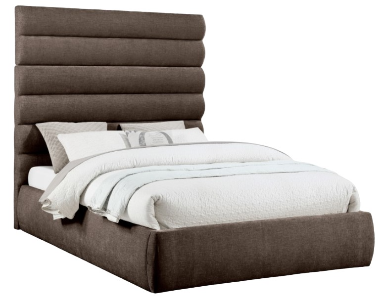 Revealing the silky, soft Adam brown chenille queen bed, showcasing deep channel tufting and a contemporary design to add a touch of modern elegance to your bedroom. Its fully slatted construction eliminates the need for a box spring, while the option to add additional panels allows you to customize the headboard height.Read More