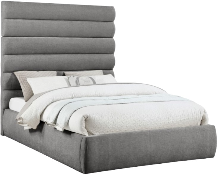 Revealing the silky, soft Adam grey chenille queen bed, showcasing deep channel tufting and a contemporary design to add a touch of modern elegance to your bedroom. Its fully slatted construction eliminates the need for a box spring, while the option to add additional panels allows you to customize the headboard height.Read More
