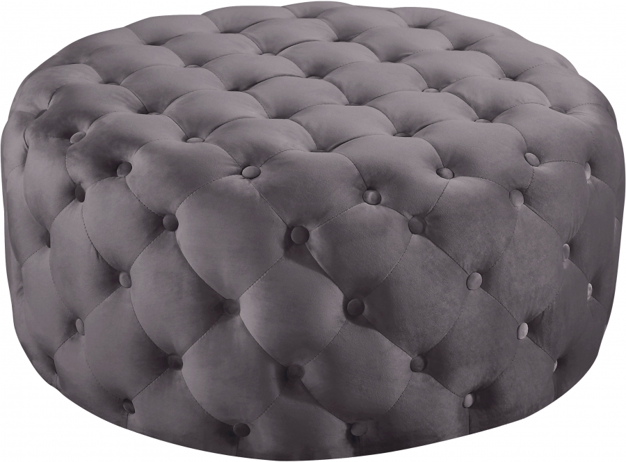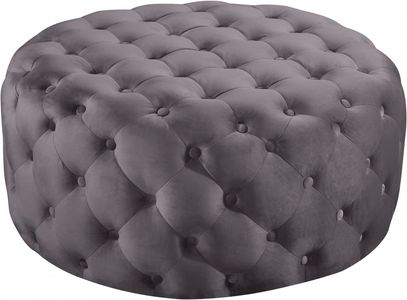 Rest weary legs at day's end atop the welcoming comfort of this Addison grey velvet ottoman. This Hollywood-inspired ottoman features deep button tufting from top to bottom for a luxe look and is covered in velvety upholstery for added glam. The vibrant black color makes a bold statement in your space. This substantially sized ottoman also doubles as an extra seat and is padded thickly for supreme comfort.