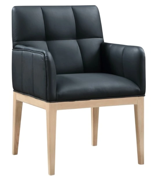 Tailored and modern, the Adrian black vegan leather upholstered dining arm chair brings together soft vegan leather and a natural oak finish for a clean, elevated look. Supported by a solid wood frame and legs, it balances comfort with lasting durability. Use it to add a contemporary edge to dining spaces, offices, or cozy corners.Read More
