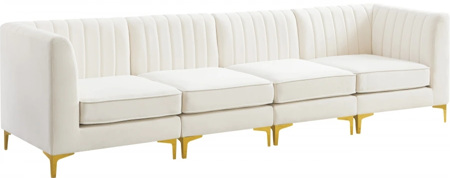 Bring modern beauty to your space with the addition of this Alina Velvet Modular Sofa. This beautiful sofa features deep channel tufting to ramp up its visual interest and add to its resilient demeanor. Its soft cream velvet upholstery blends nicely with existing elements in your room and is sleek to the touch.Read More