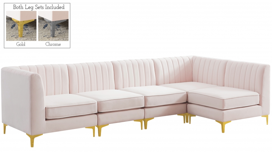 Elegant and eye-catching, the stunning pink velvet Alina Modular Sectional from Meridian Furniture is the perfect addition to any space. Sectional adds a contemporary style to any room.