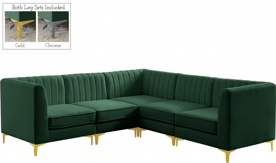 Elegant and eye-catching, the stunning green velvet Alina Modular Sectional from Meridian Furniture is the perfect addition to any space. Sectional adds a contemporary style to any room.