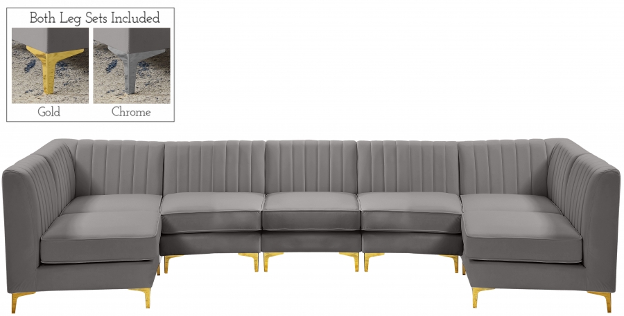 Elegant and eye-catching, the stunning grey velvet Alina Modular Sectional from Meridian Furniture is the perfect addition to any space. Sectional adds a contemporary style to any room.