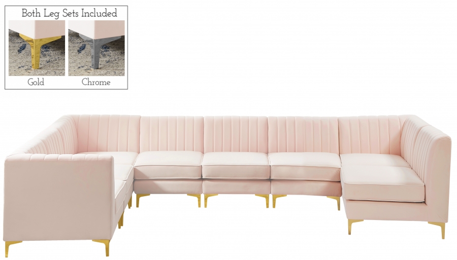 Elegant and eye-catching, the stunning pink velvet Alina Modular Sectional from Meridian Furniture is the perfect addition to any space. Sectional adds a contemporary style to any room.
