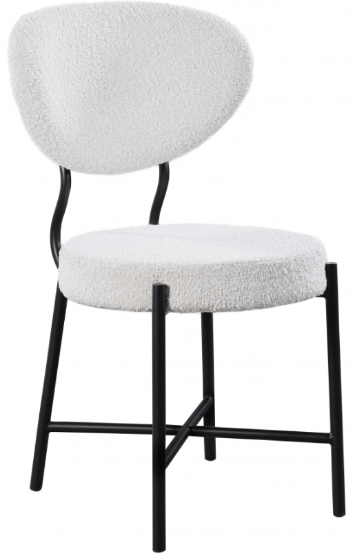 Eat your meals in style with this Allure dining chair. Featuring a matte black metal frame and cream boucle fabric upholstery, this chair is as sturdy as it is comfortable. Its contemporary design adds flair to your kitchen or dining area, making it a unique discussion piece.Read More