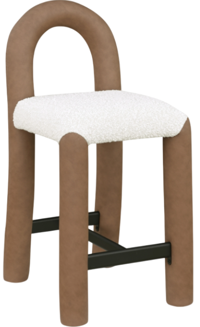 Make a bold statement with the Amari brown vegan leather and cream boucle fabric upholstered counter stool, where modern artistry meets everyday comfort. Wrapped in soft vegan leather with boucle seating, this stool offers a luxurious feel while its distinctive, rounded open-back design adds an airy, sculptural touch.Read More