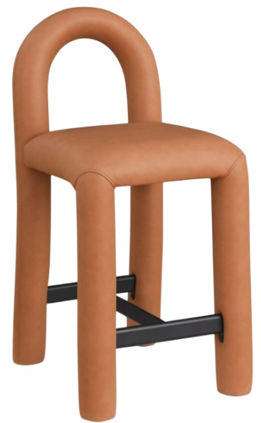 Make a bold statement with the cognac Amari vegan leather upholstered counter stool, where modern artistry meets everyday comfort. Wrapped in soft vegan leather, this stool offers a luxurious feel while its distinctive, rounded open-back design adds an airy, sculptural touch. Supported by a sturdy iron frame, it provides both comfort and durability.Read More
