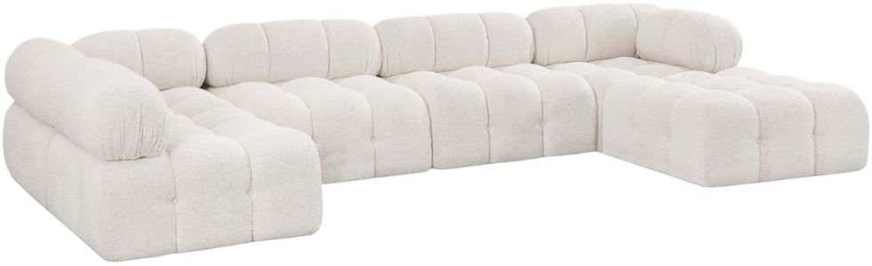 Introduce a touch of modern sophistication to your living area with the exquisite Ames Boucle Fabric Sectional. With plush cream boucle fabric and unique design, it will elevate the visual appeal of your living space. This elegant and captivating sectional can be mixed and matched with other pieces from the collection.Read More