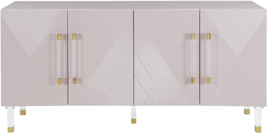 Make a bold statement in your living space with this eye-catching Florence Sideboard/Buffet from Meridian Furniture. Its pink lacquer is complemented by a gold finished base, creating a contemporary design that's both modern and stylish.Read More