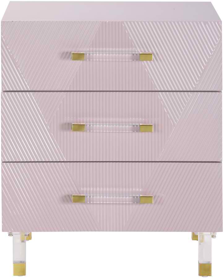 This lovely table features a pink lacquer exterior with acrylic legs for a look that's uber-modern and sophisticated in your bedroom sanctuary. The three drawers glide open easily, allowing plenty of room for holding reading material, night-time medicines, and other essentials.Read More