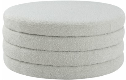 Liven up your living space with this Aphia cream boucle fabric ottoman/coffee table from Meridian Furniture. Featuring rich cream boucle fabric upholstery, this ottoman offers softness to the touch and style to the eye. Deep channel tufting gives the appearance of multiple layers stacked together, making it a contemporary piece perfect for any modern home.Read More
