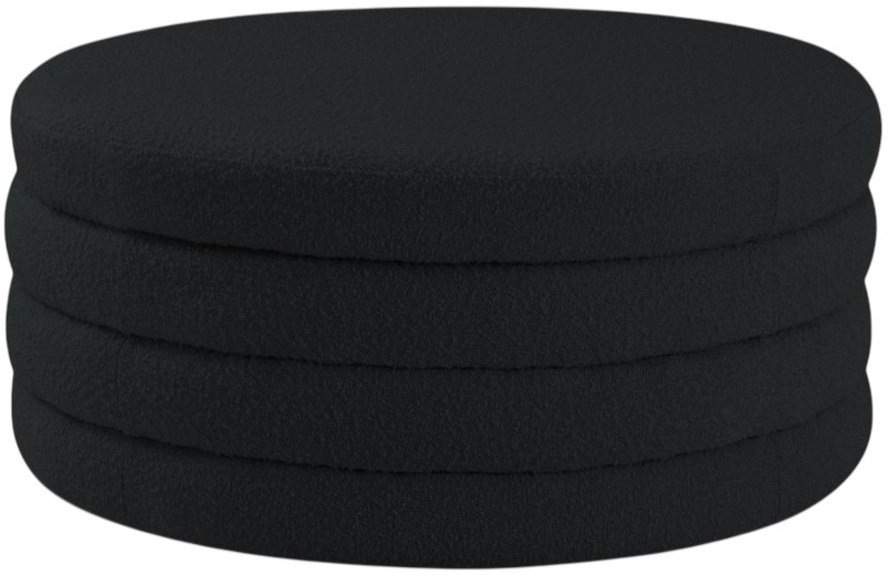 Liven up your living space with this Aphia black boucle fabric ottoman/coffee table from Meridian Furniture. Featuring rich boucle fabric upholstery, this ottoman offers softness to the touch and style to the eye. Deep channel tufting gives the appearance of multiple layers stacked together, making it a contemporary piece perfect for any modern home.Read More