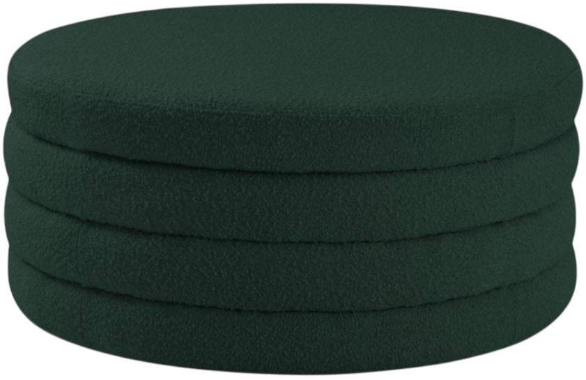 Liven up your living space with this Aphia green boucle fabric ottoman/coffee table from Meridian Furniture. Featuring rich boucle fabric upholstery, this ottoman offers softness to the touch and style to the eye. Deep channel tufting gives the appearance of multiple layers stacked together, making it a contemporary piece perfect for any modern home.Read More