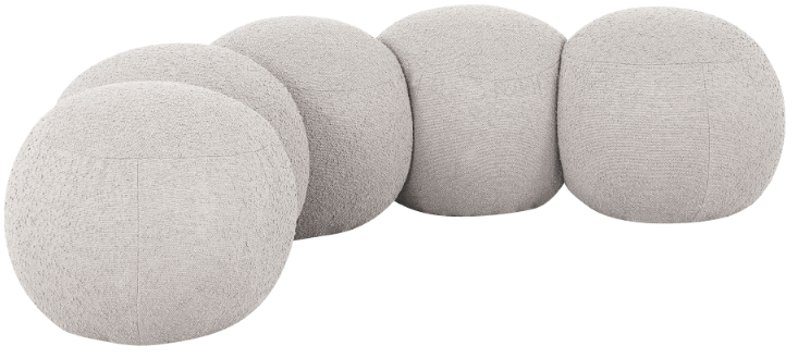 Material: Boucle fabric, eucalyptus wood, plywood, and foam