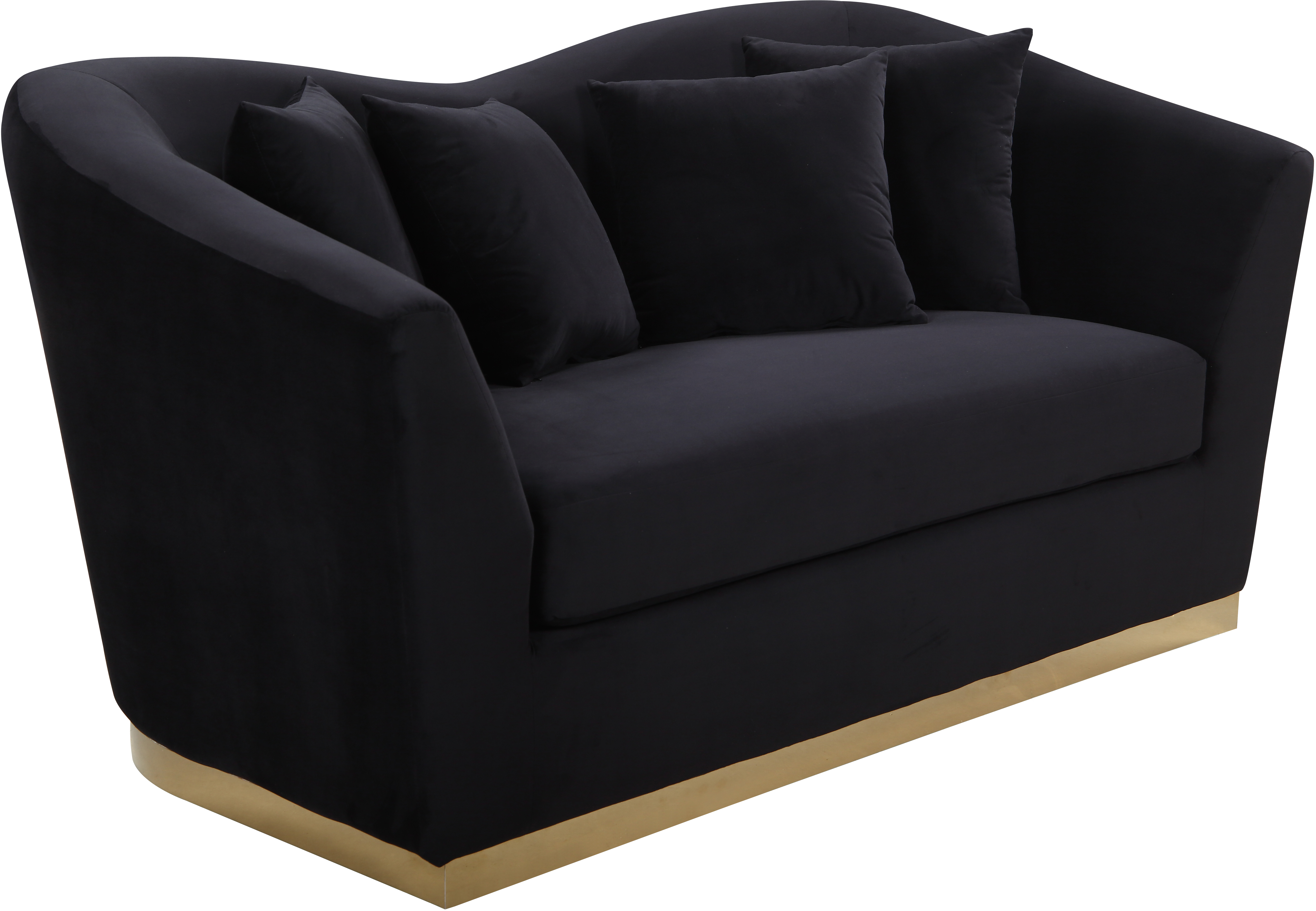 Make the Arabella Black Velvet loveseat your favorite naptime spot. This handsome loveseat is upholstered in black velvet for a glamorous touch and is accented with gold stainless steel around its base for a touch of modernity.Read More