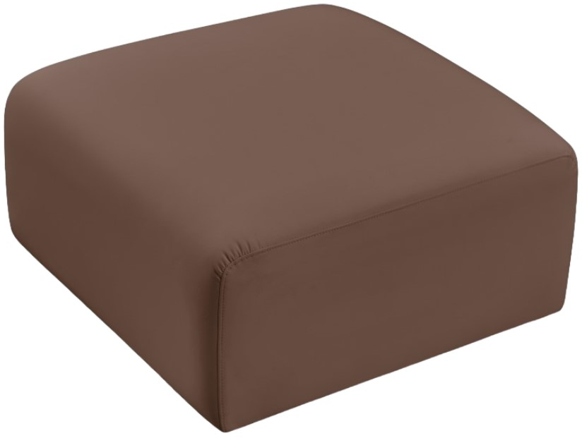 Unleash modern opulence with the Arc Vegan Leather Ottoman. Crafted for the modern connoisseur, this ottoman injects an air of refined luxury into any space. Its sleek silhouette, upholstered in supple brown vegan leather, exudes timeless sophistication while the deep channel tufting adds textural intrigue, further elevating the chair's visual appeal.Read More