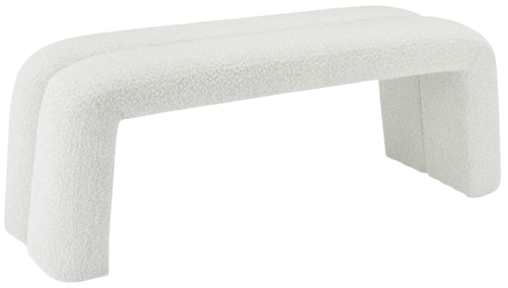 Add impromptu seating in the bedroom, foyer, or beyond with his lovely cream boucle fabric bench. This handsome bench has unexpected curves and lines that make it a true work of art in any setting. The soft boucle fabric combined with deep channel tufting make it comfortable for sitting.Read More