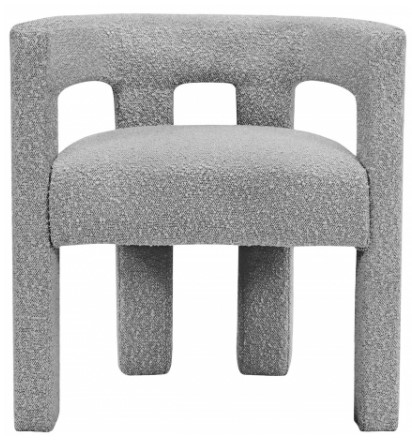 The chair is covered top to bottom in rich grey boucle fabric, so it's super soft to the touch and elegant to the eye.