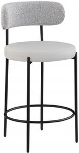 The curved backs support the body while you sip a frosty cold one or nosh on some breakfast fare. A matte black metal frame gives the stools' design durability while the taupe vegan leather seat and boucle fabric back adds a touch of softness and comfort.
