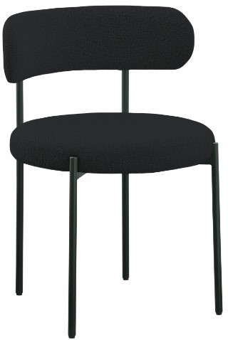 Liven up your dining area with this Beacon black boucle fabric dining chair. Crafted from iron and boucle fabric, this chair is both sturdy and cozy. Its matte grey metal frame provides foundational support while its curved seat and backrest provide physical support for those who sit in it.Read More