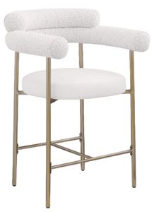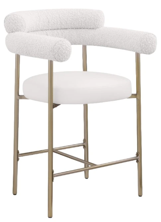 The brushed brass iron metal frame provides reliable support for this counter height stool while the rich cream boucle fabric upholstery and soft cream vegan leather padding ensure comfort for all who decide to take a meal (or have a snack) with you.