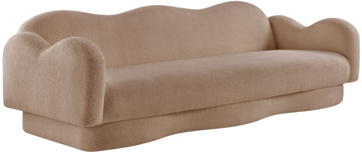 Materials: Faux shearling teddy fabric, eucalyptus wood, plywood, foam