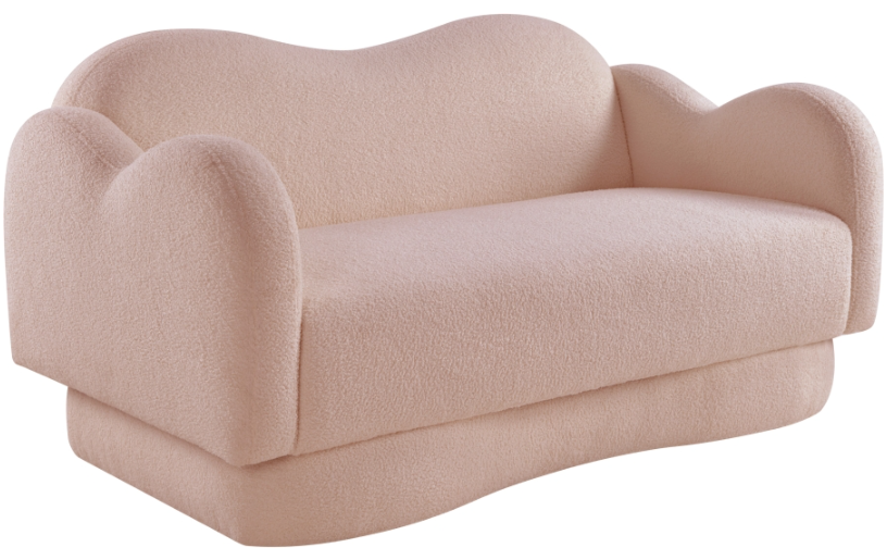 Elevate your space with the Bloom loveseat, upholstered in soft pink faux shearling teddy fabric. This beautifully crafted loveseat combines modern design with a unique curvy back and base, making it both a stylish and comfortable addition to any room. Designed for durability and elegance.Read More