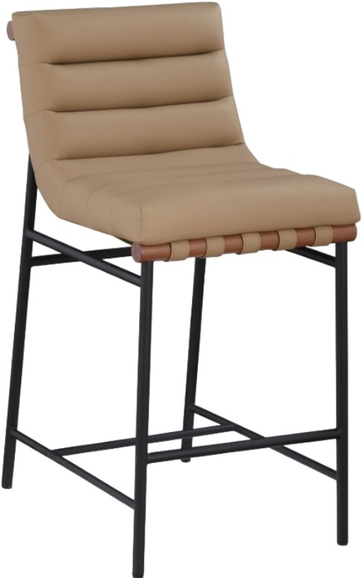 Whether at the home bar or the kitchen counter, this Burke tan vegan leather counter stool keeps guests comfortable while noshing on pancakes or sipping frosty beverages. Upholstered in soft tan vegan leather with tan vegan leather straps, this handsome counter stool makes guests want to stay till closing time.Read More