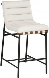 Whether at the home bar or the kitchen counter, this Burke cream vegan leather counter stool keeps guests comfortable while noshing on pancakes or sipping frosty beverages. Upholstered in soft cream vegan leather with cream vegan leather straps, this handsome counter stool makes guests want to stay till closing time.Read More