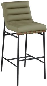 Whether at the home bar or the kitchen counter, this Burke olive vegan leather bar stool keeps guests comfortable while noshing on pancakes or sipping frosty beverages. Upholstered in soft olive vegan leather with olive vegan leather straps, this handsome bar stool makes guests want to stay till closing time.Read More
