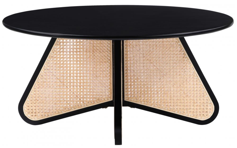 An expansive round oak veneer top gives you room for resting a drink or book or setting up your Scrabble board on family game night. Construction with rubberwood and wood products gives this Butterfly table a resilient design, while its natural cane bottom adds a striking visual and instantly draws the eye.