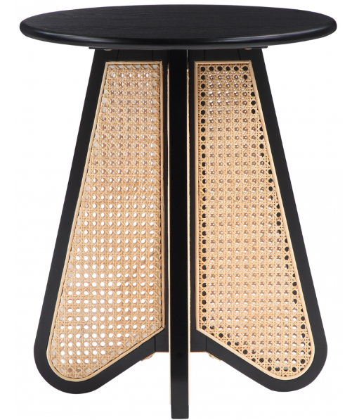 An expansive round oak veneer top gives you room for resting a drink or book or lamp to brighten the night. Construction with rubberwood and wood products gives this Butterfly table a resilient design, while its natural cane bottom adds a striking visual and instantly draws the eye.