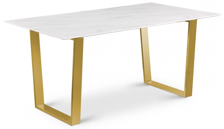Elevate your dining experience with this Cameron dining table. This gold dining table is made from rich gold stainless steel with a marble stone veneer top for a look that wows, whether you're serving a casual meal for the family or an intimate dinner for just the two of you.Read More